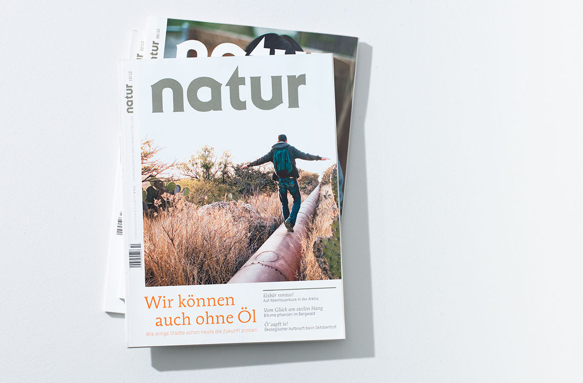 Um die Wiedererkennung zum ehem. Titel natur + kosmos zu gewährleisten, wurde das bestehende „natur“-Logo übernommen.