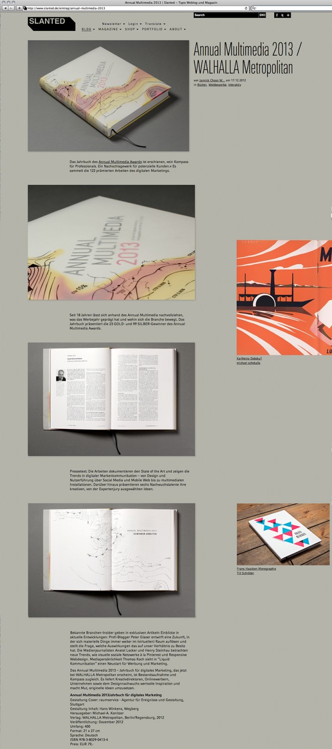 2012 und 2013 Covergestaltung für das Annual Multimedia, das Jahrbuch für digitales Marketing, mit allen Facts, Musts und Trends der digitalen Markenführung. Das Annual Multimedia Jahrbuch präsentiert die Gewinner des Awards.